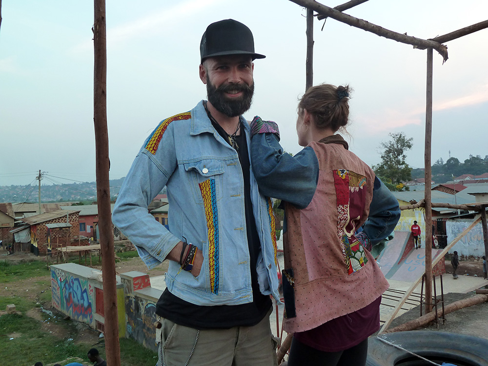 Der erste „Rollout“ / Bereich unseres Uplifting Centers der Uganda Skateboard Union umfasst eine Outdoor-Werkstatt, ein Studio und wir haben unsere Freunde vom“Banakibuga Street Minds“ Kollektiv mit dem Kauf einer Nähmaschine, dem Anschluss von Strom und der Bereitstellung von zusätzlichen Solarleuchten unterstützt, damit diese ambitionierte Menschen rund um die Uhr an ihren (Mode-) Ideen arbeiten können: